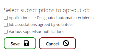Check subscriptions to opt-out of, un-check to continue receiving them, and click Save to commit your changes.